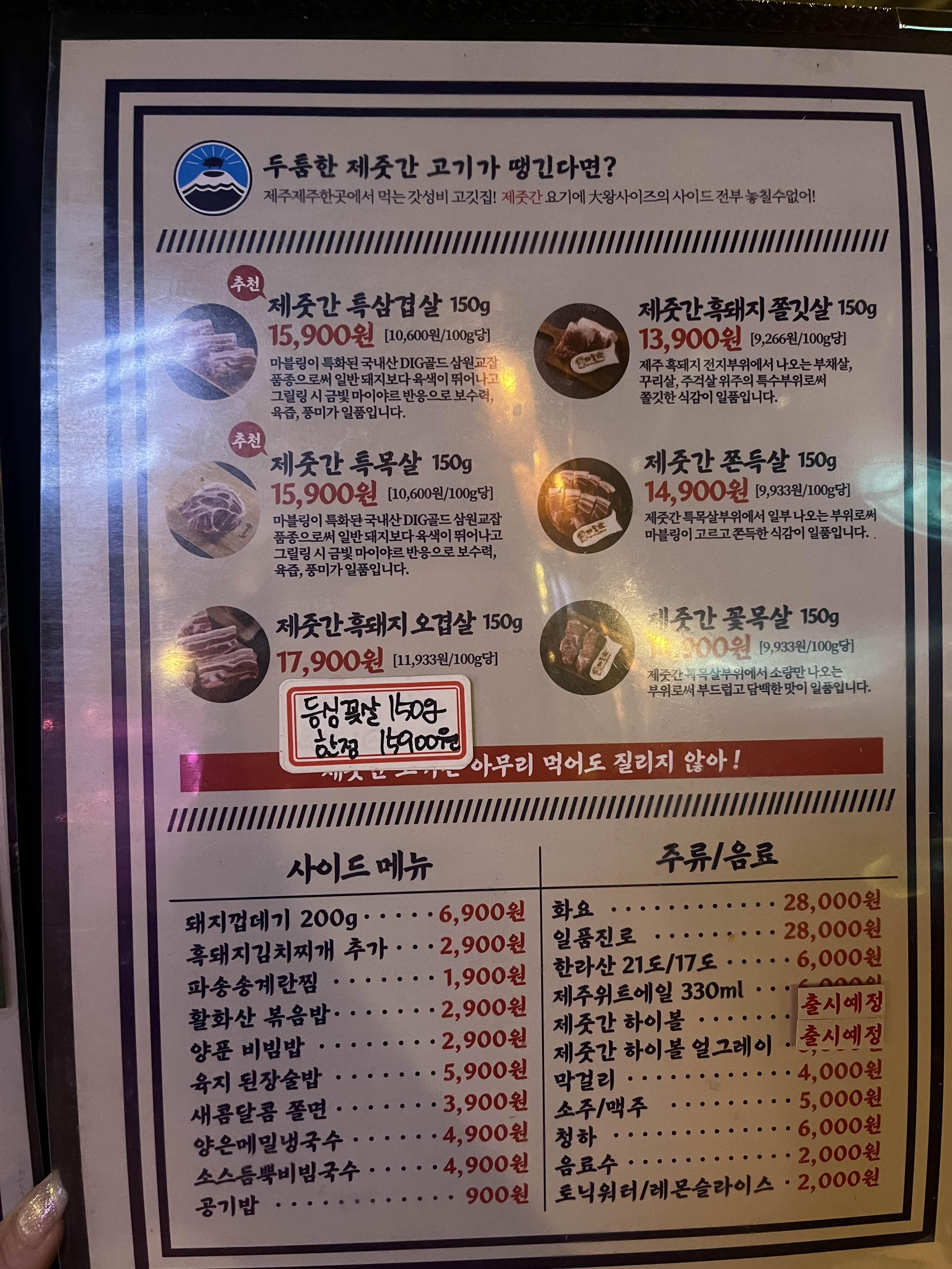 제주도에서 먹었던 삼겹살을 추억(?)하고 싶으신 분들은 일반 삼겹살을 시키시는 게 좋을듯 하다.