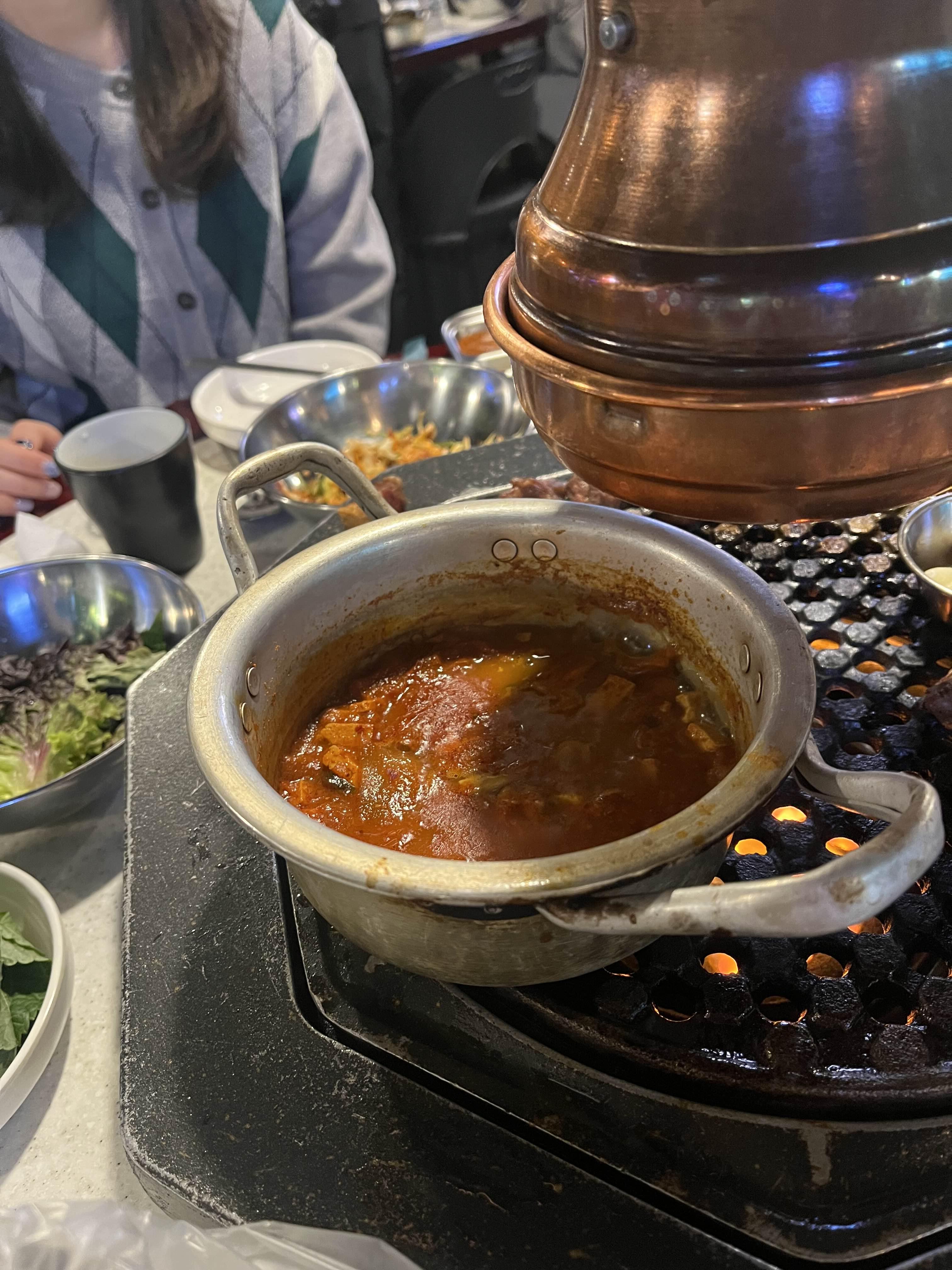 아! 그리고 기본메뉴로 처음에 김치찌개를 주신다.(기본제공이 이렇게 많아도 되는가?? 기본이 너무 탄탄하다. 심지어 셀프바에는 야채와 쌈들을 갖다 먹을 수 있음). 요즘가게들은 기본으로 안주는게 하도 디폴트라 이런 가게는 놀랍다.